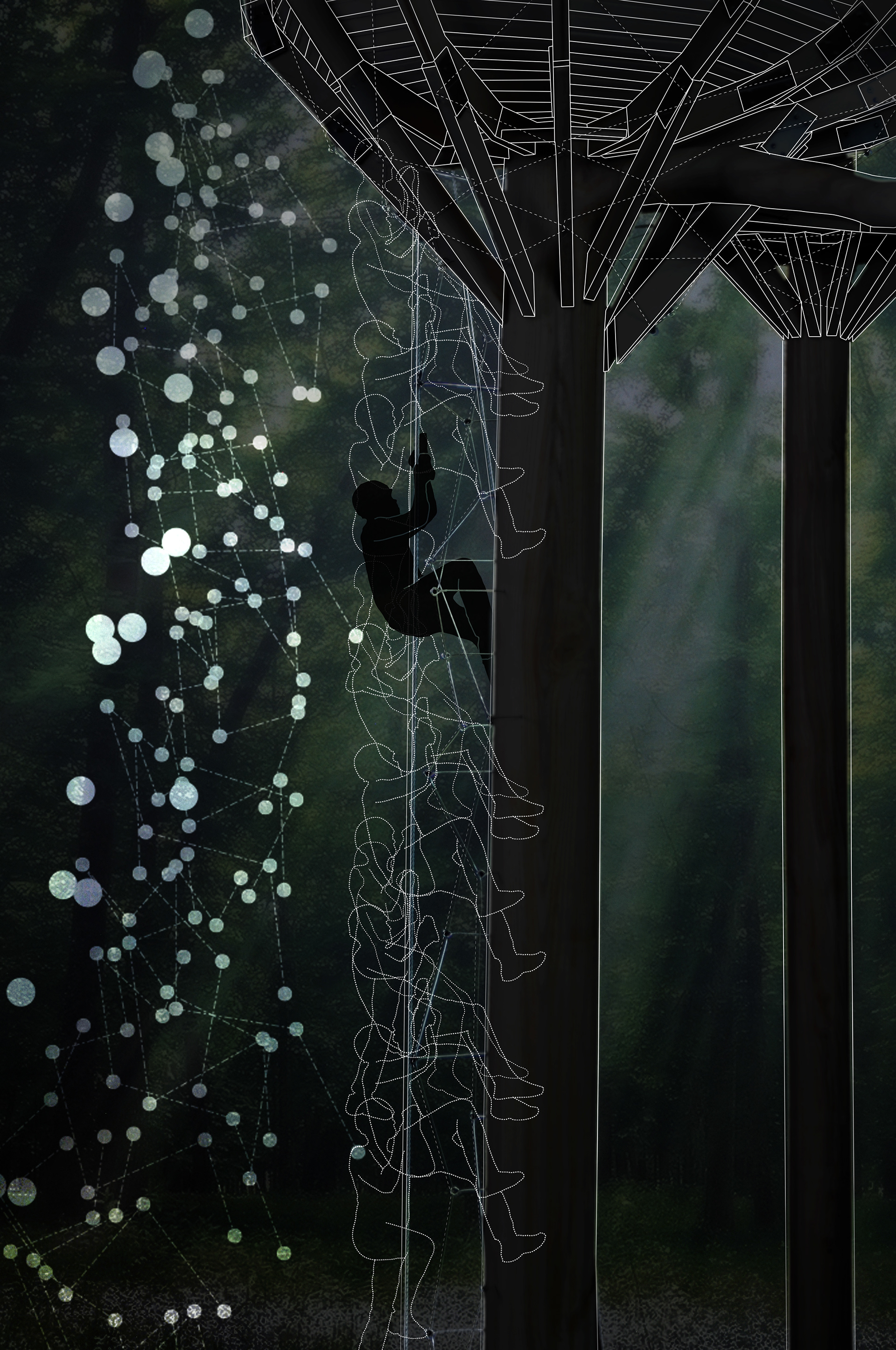 The Treehouse is a rare opportunity to focus architecture on the mediation between two living organisms: Humans & Trees. There is an incredible feeling when one arrives at a treehouse. Treehouse patrons can attest to the primal, childlike wonder of escaping into the trees. Everyone should experience the world from the canopy at least once.